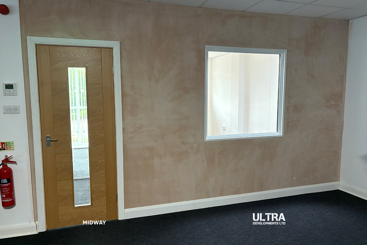 Ultra Developments were appointed to relocate the reception area from downstairs to upstairs and create a new office space within an accountants’ commercial building. Our work included removing the existing glass panel partitions, building new stud walls, and constructing a modern reception area complete with a new window and entrance door. We carried out all plastering, painting, and window filming to achieve a clean, high-quality finish. The redesigned reception and office spaces provide exactly what the business required to further streamline their operations — another set of happy customers for Ultra Developments.